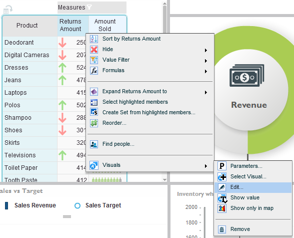The Edit button on the Visuals tab of the ribbon and the Edit option from the Infographics menu opens the selected infographics entity in the Infographics Designer where you can edit it.