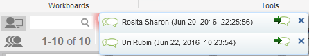 Pointing to the icons in the bottom-right corner shows the referred workboard, and the users participating in that discussion.