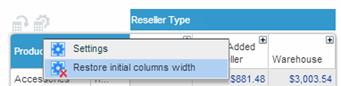 Point to the upper left corner of the grid to reveal the Settings button and click it. From the menu, select Restore initial column widths.