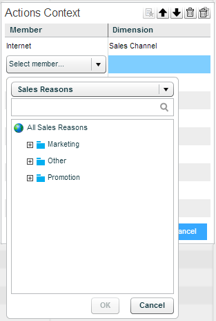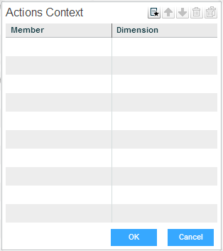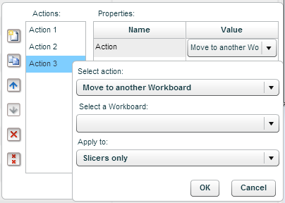 If the action is “Move to another workboard”, when the end-user will perform this action to move to another workboard, the current slicing in the workboard will apply to the other workboard. If you want the action to ignore the original slicing and move only certain dimension members, use the Actions Context property to define those members.