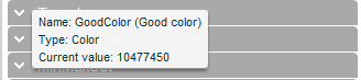 Hovering over a parameter tab displays a tooltip with the parameter name, the parameter type and the current value if there is one.