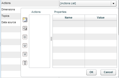 Note that actions can be defined at infographics family, entity and graphic object levels.