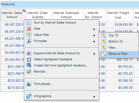 in the ranked member’s heading, and from the member menu select Value Filter > Remove Filter.