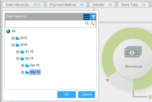 Click on the slicer and select the member(s) with which you want to slice. Click OK.