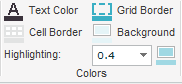 Open the palette for Text Color, Cell Border, Grid Border and Background, and select a color. In Highlighting, select a color for the highlighting effect and change the opacity (color alpha).